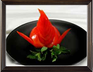 Tomato Roses And Chilli Flower Create a wonderful impression with tomato roses and chilli flowers. INGREDIENTS Tomato : 1 large Chilli : 1 METHOD For tomato roses Make sure your knife is sharp and the tomato is ripe but firm.